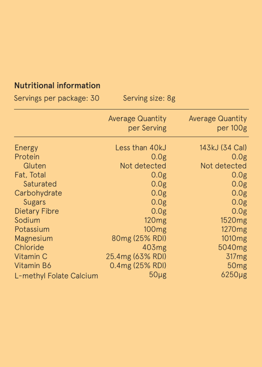 Vitamin C is vital for both mama and bub during pregnancy and for postpartum recovery, we chose to use a fruit-based ascorbic acid which is very quick absorbing.